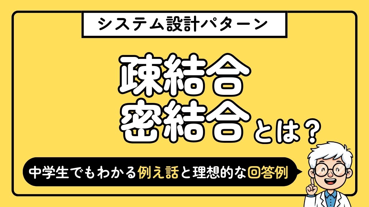 私:疎結合とは、システム内の各要素が互いに依存しない状態のことです。一方、密結合は、要素同士が強く依存している状態を指します。